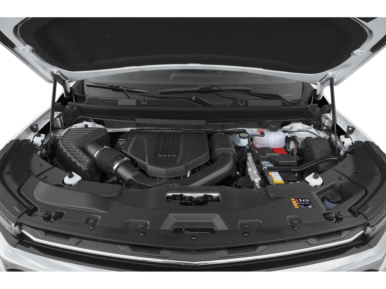 Equipped with Preferred Equipment Group 1LT, Trailering Package (220 Amps Alternator, Heavy-Duty Cooling System, Hitch Guidance, and Hitch View), 3rd row seats: split-bench, 4-Way Manual Front Passenger Seat Adjuster, 4-Wheel Disc Brakes, 6 Speakers, 6-Speaker Audio System Feature, 8-Way Power Driver Seat Adjuster, ABS brakes, Air Conditioning, Alloy wheels, AM/FM radio: SiriusXM with 360L, Apple CarPlay/Android Auto, Auto High-beam Headlights, Automatic temperature control, Brake assist, Bumpers: body-color, Compass, Delay-off headlights, Driver 4-Way Power Lumbar Seat Adjuster, Driver door bin, Driver vanity mirror, Dual front impact airbags, Dual front side impact airbags, Electronic Stability Control, Emergency communication system, Exterior Parking Camera Rear, Four wheel independent suspension, Front anti-roll bar, Front Bucket Seats, Front Center Armrest, Front dual zone A/C, Front reading lights, Fully automatic headlights, Heated door mirrors, Heated front seats, Heated steering wheel, Illuminated entry, Low tire pressure warning, Navigation System, Occupant sensing airbag, Outside temperature display, Overhead airbag, Overhead console, Panic alarm, Passenger door bin, Passenger vanity mirror, Power door mirrors, Power driver seat, Power Liftgate, Power steering, Power windows, Premium Cloth Seat Trim, Radio data system, Radio: 17.7" Diagonal Display, Rear air conditioning, Rear anti-roll bar, Rear reading lights, Rear window defroster, Rear window wiper, Remote keyless entry, Security system, SiriusXM w/360L, Speed control, Speed-sensing steering, Spoiler, Steering wheel mounted audio controls, Tachometer, TBD Axle Ratio, Telescoping steering wheel, Tilt steering wheel, Traction control, Trip computer, Turn signal indicator mirrors, Variably intermittent wipers, Voltmeter, and Wheels: 18" Grazen Metallic Machined-Face Aluminum.